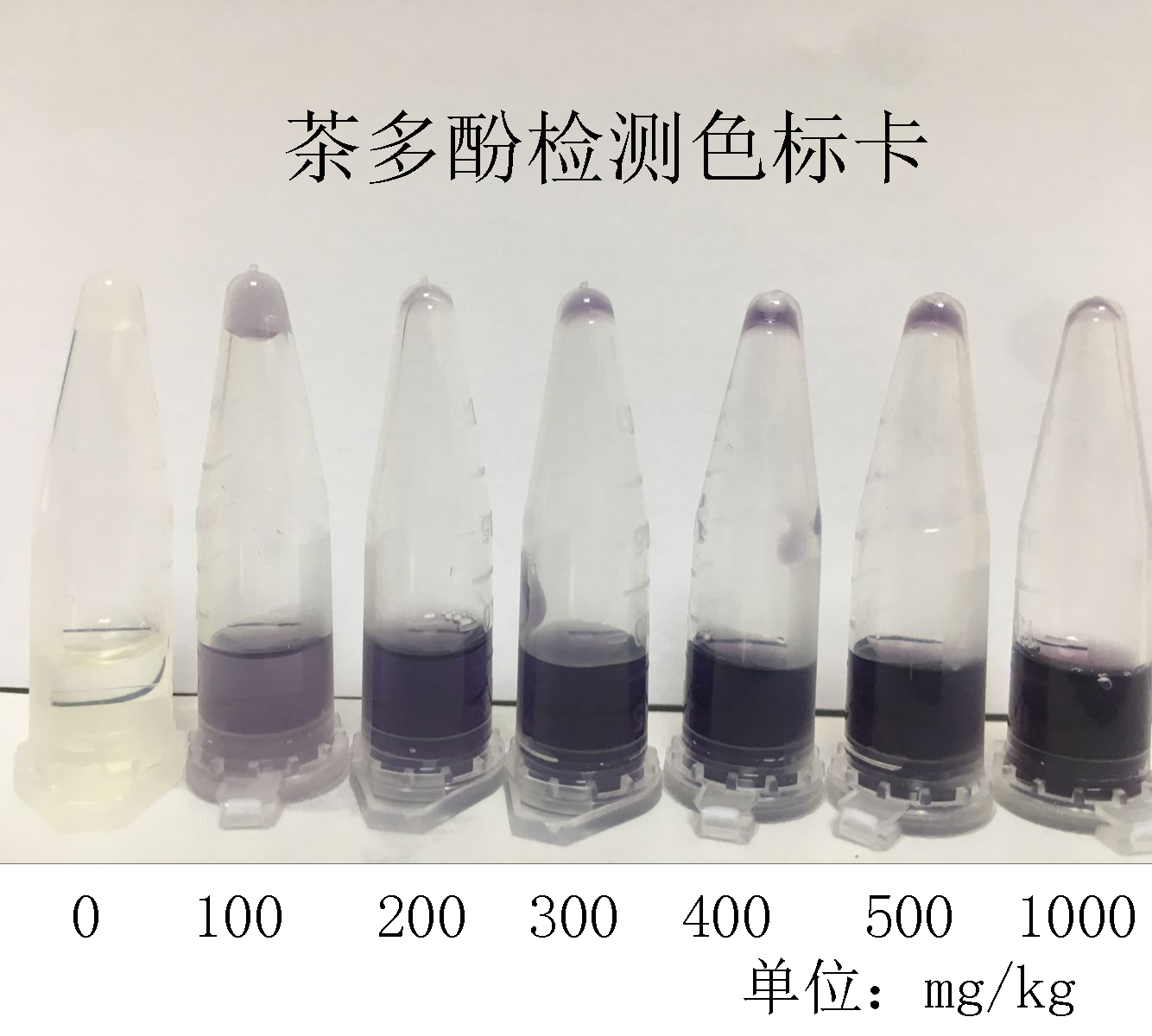 若變藍(lán)色或紫色,說明飲料中含有茶多酚。顏色越深表明含量越高。