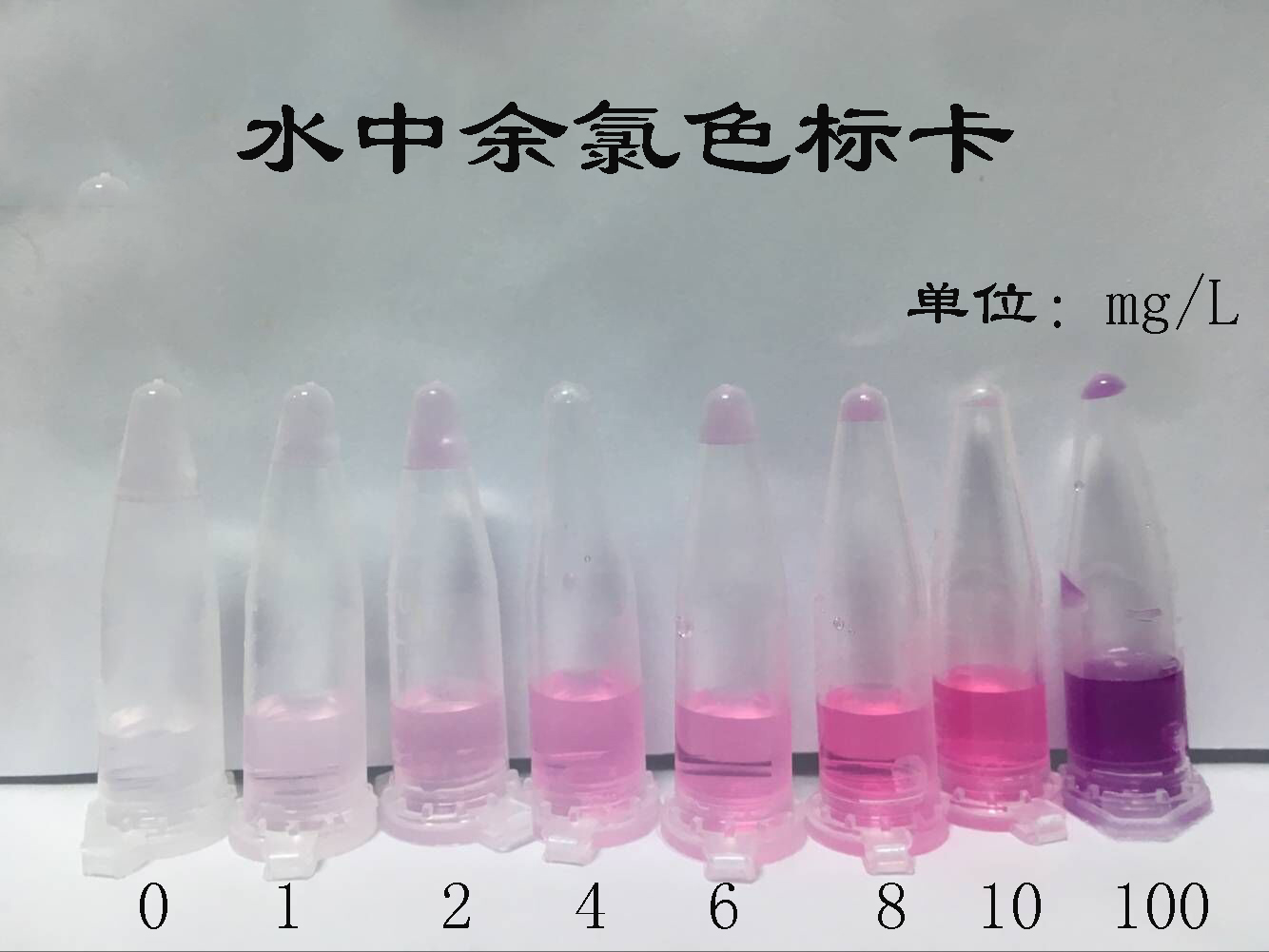 2.2:若水溶液中的顏色呈淺紅色和紫色,說明水中存在余氯,顏色越深,余氯的含量越高。(見色卡)